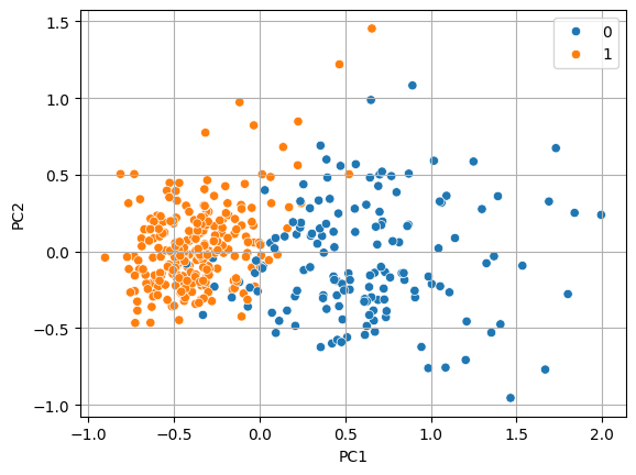 x_pca = pd.DataFrame(x_pca, columns = ['PC1', 'PC2'])