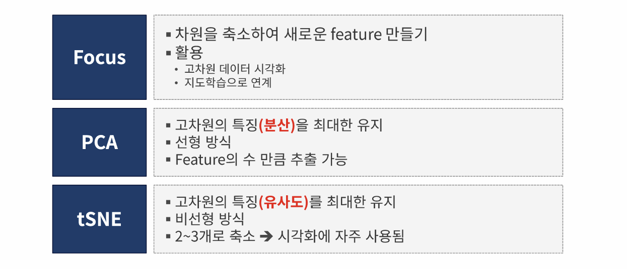 | 차원 축소 방식 | 선형 | 비선형 |