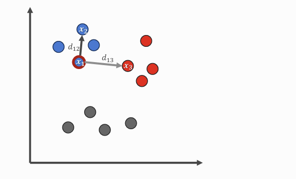 - 원본 데이터에서 유클리드 거리 계산 → 어떤 점들이 서로 가까운지 파악