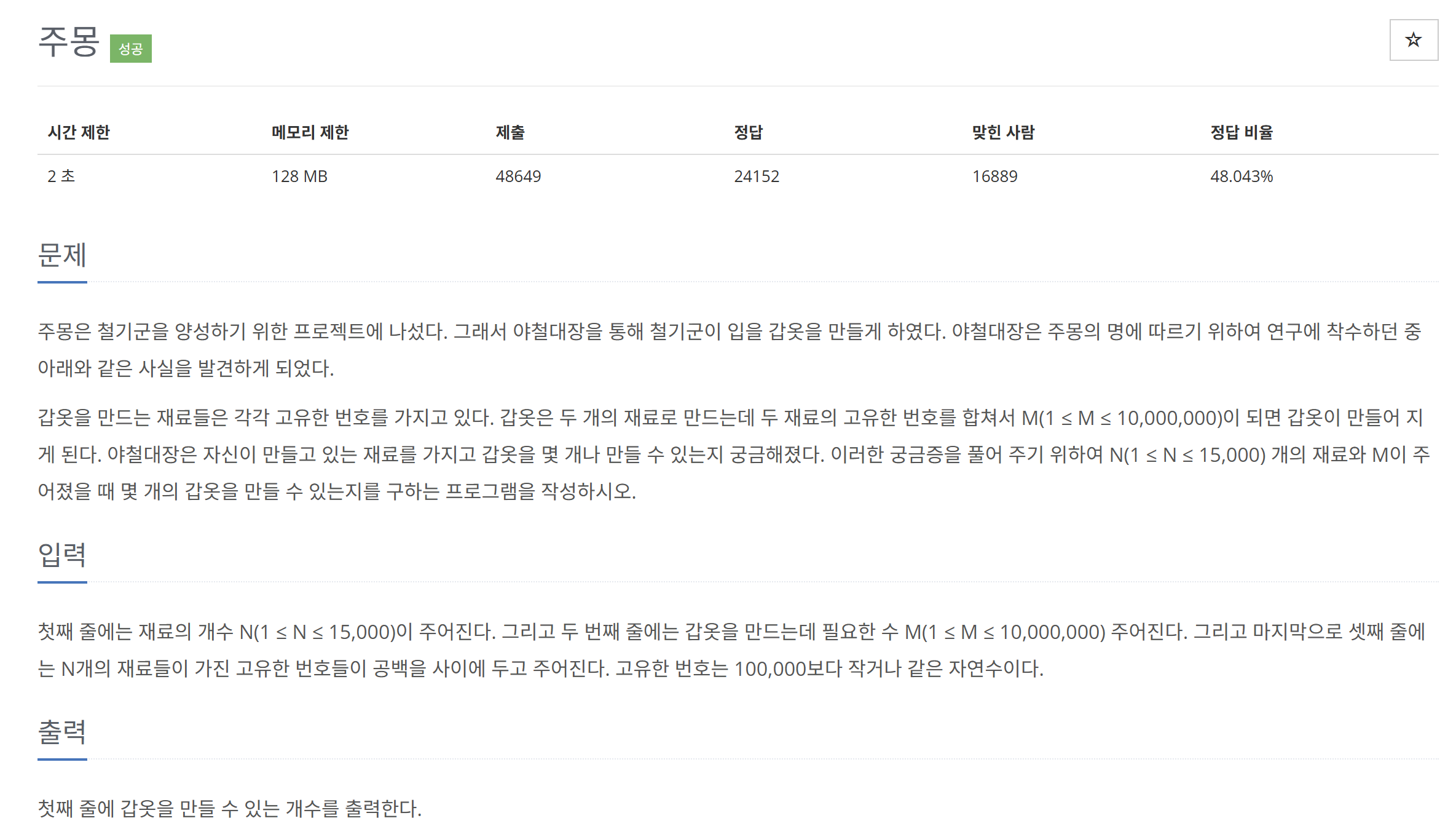 BOJ 1940번: 주몽